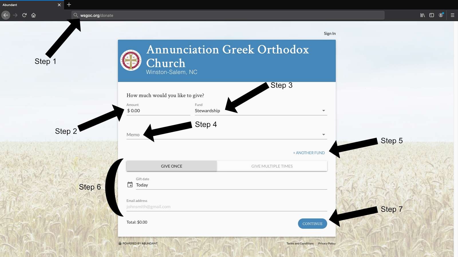 By following these directions, you will learn how to pay your stewardship or make other contributions such as Memorials, candles, flowers, or a general donation.